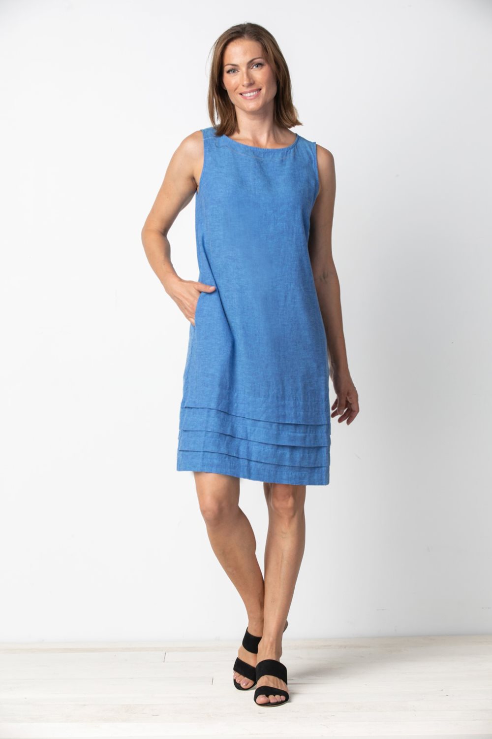 Pleated hem detail dress with pockets. Make this your go-to event dress all season long! Easily transition from an everyday dress to a special occasion dress with a quick change of accessories!