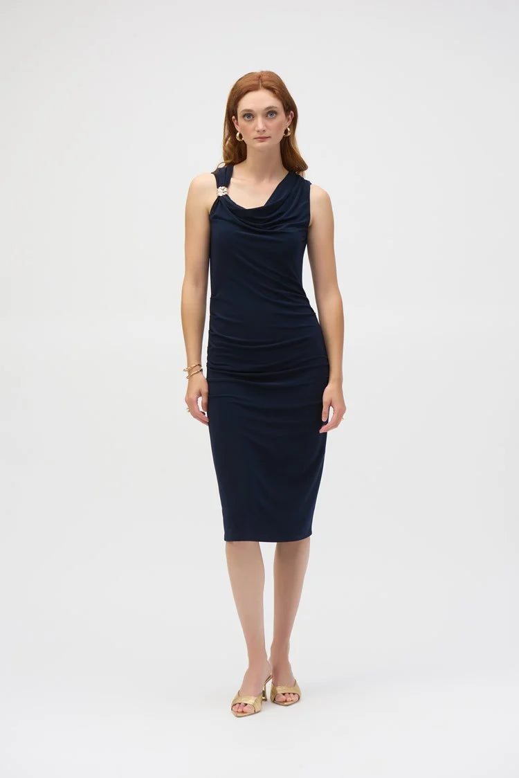 Joseph Ribkoff Silky Knit Sheath Dress With Draped Neckline Style # 252188