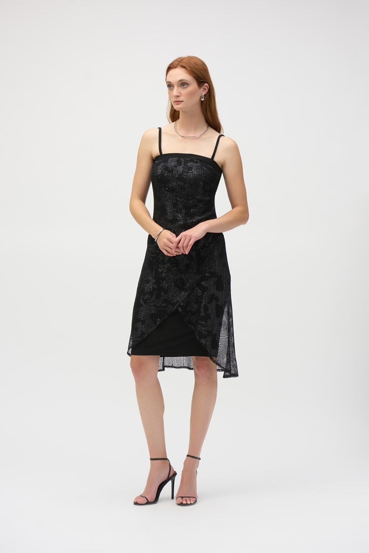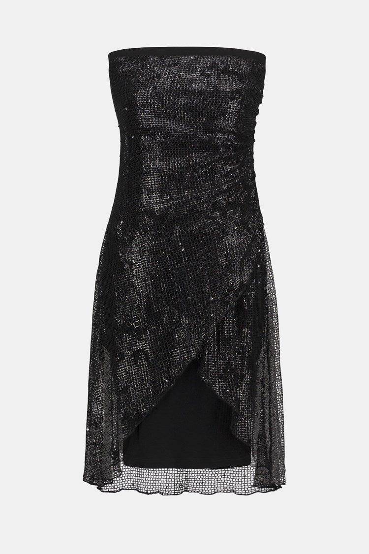 Joseph Ribkoff Foiled Mesh and Silky Knit Strapless Sheath Dress Style # 252198