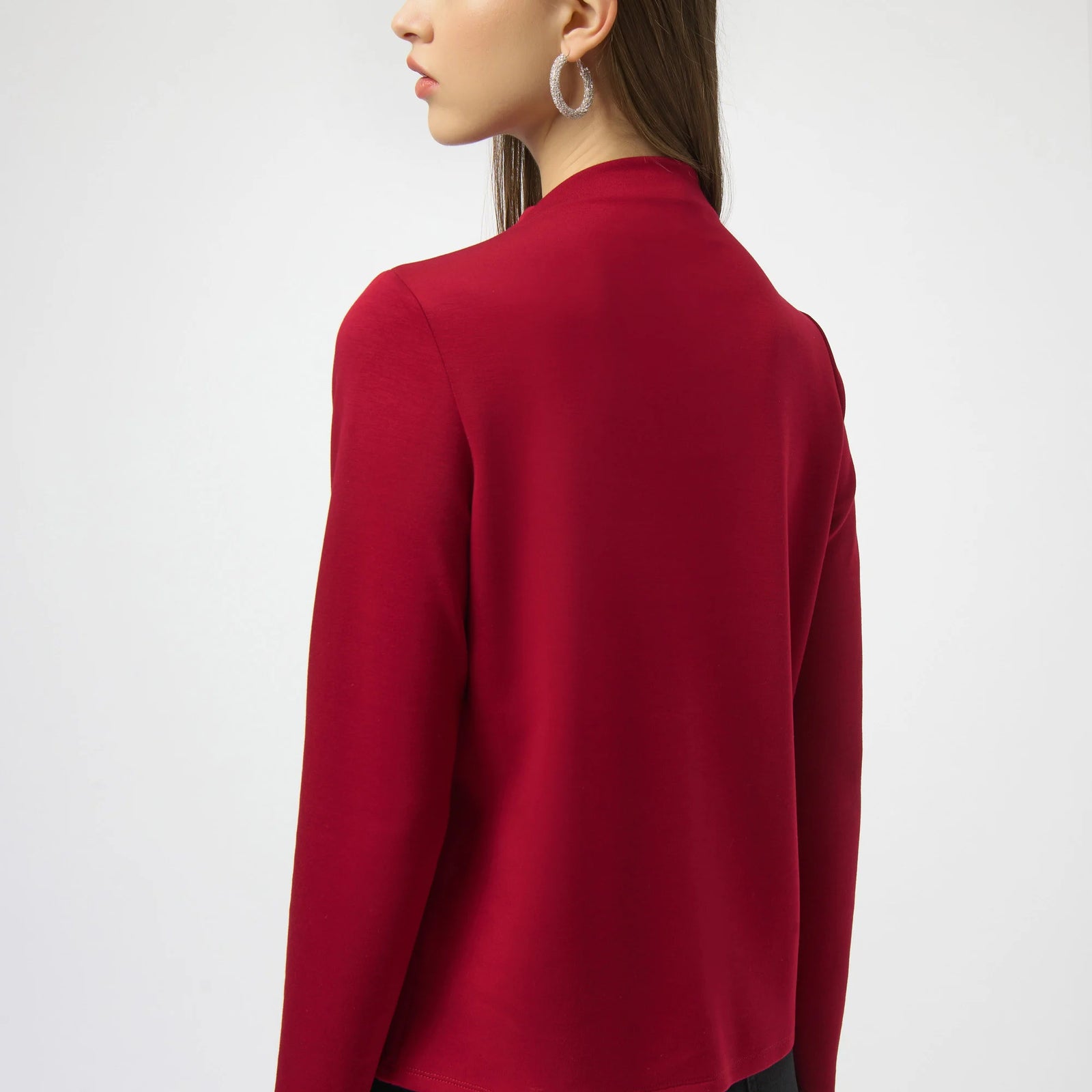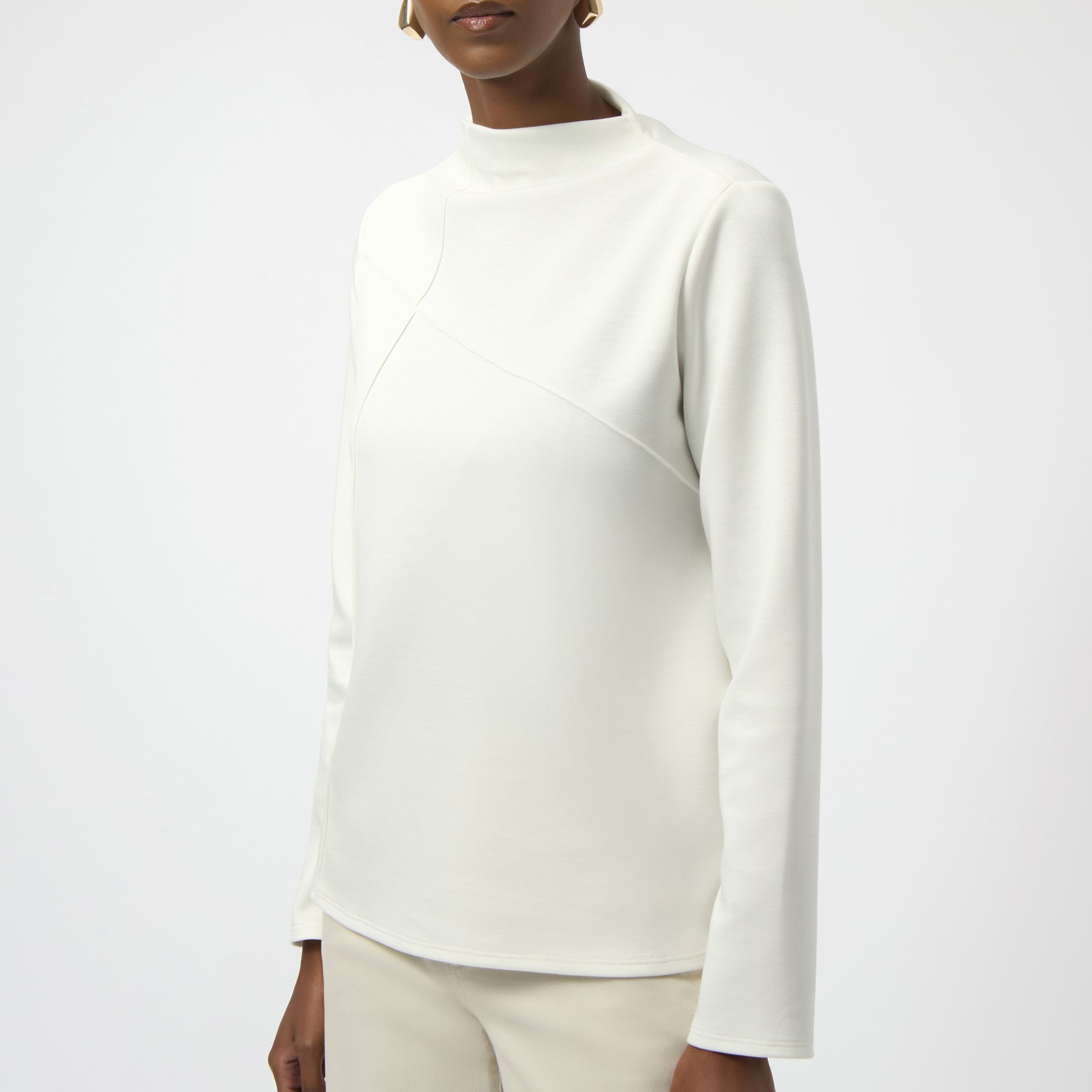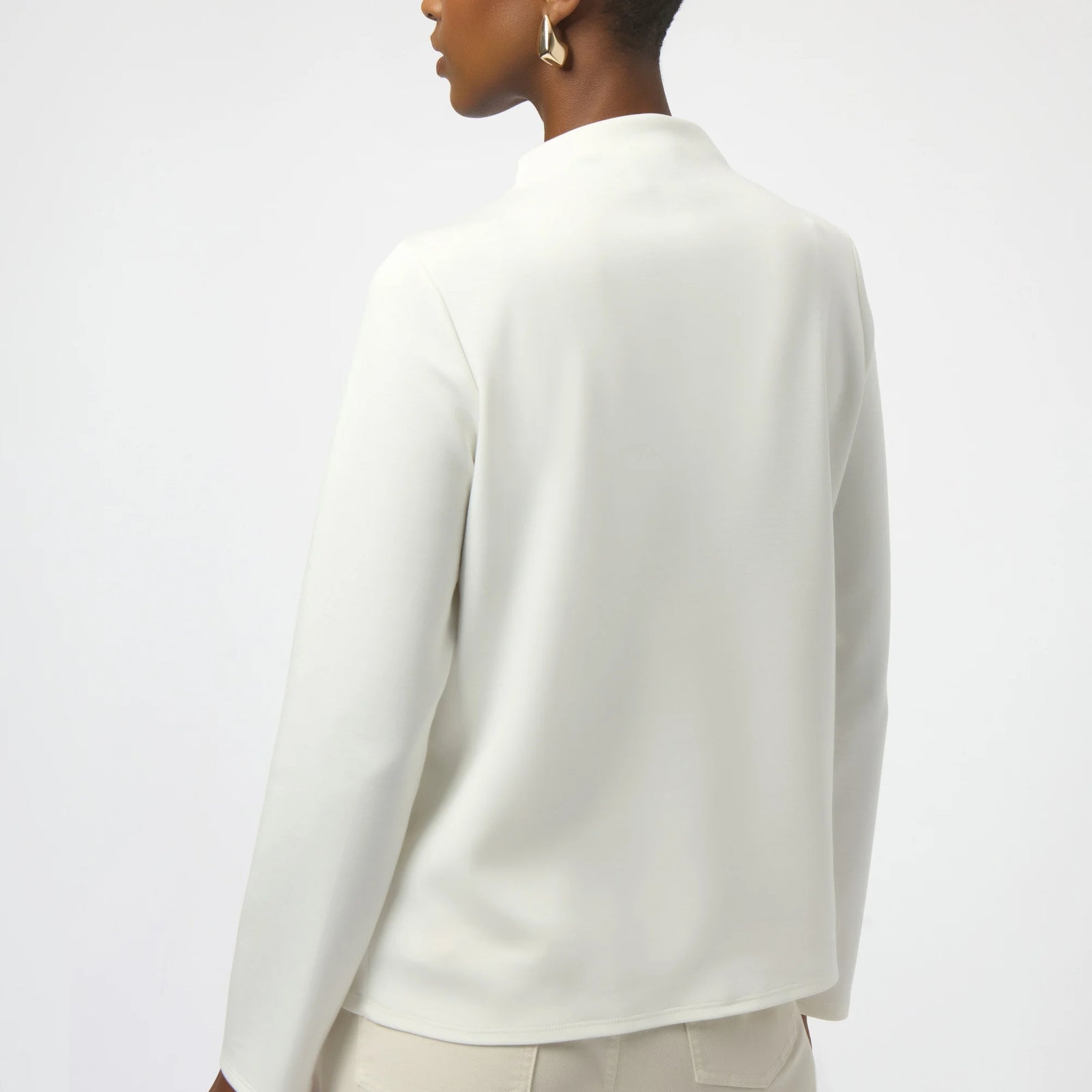 Designed in a light scuba jersey fabric, this top exudes casual elegance with its crisp straight silhouette and sleek mock neck. Pin-tuck detailing at the front of the garment adds flair and timeless appeal.