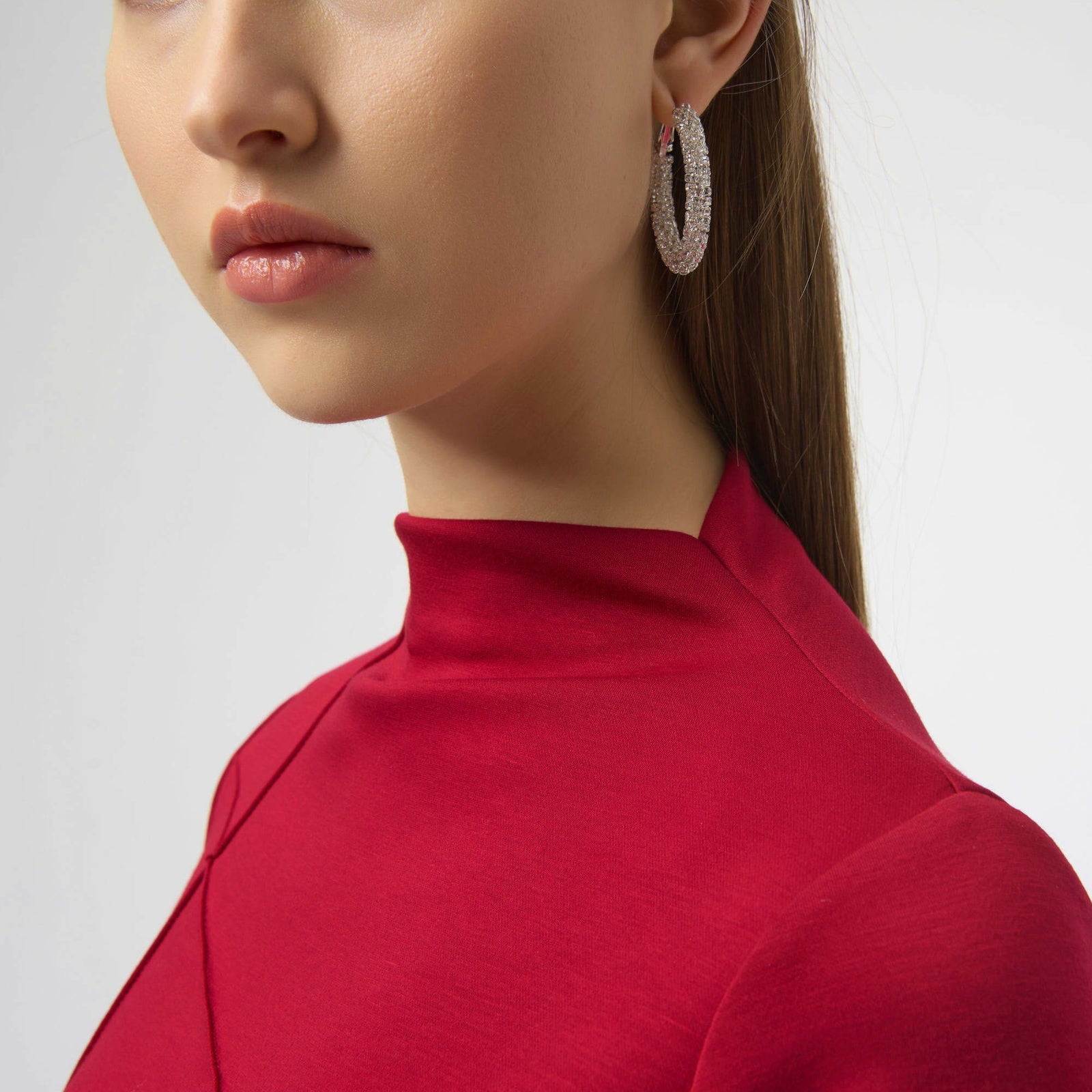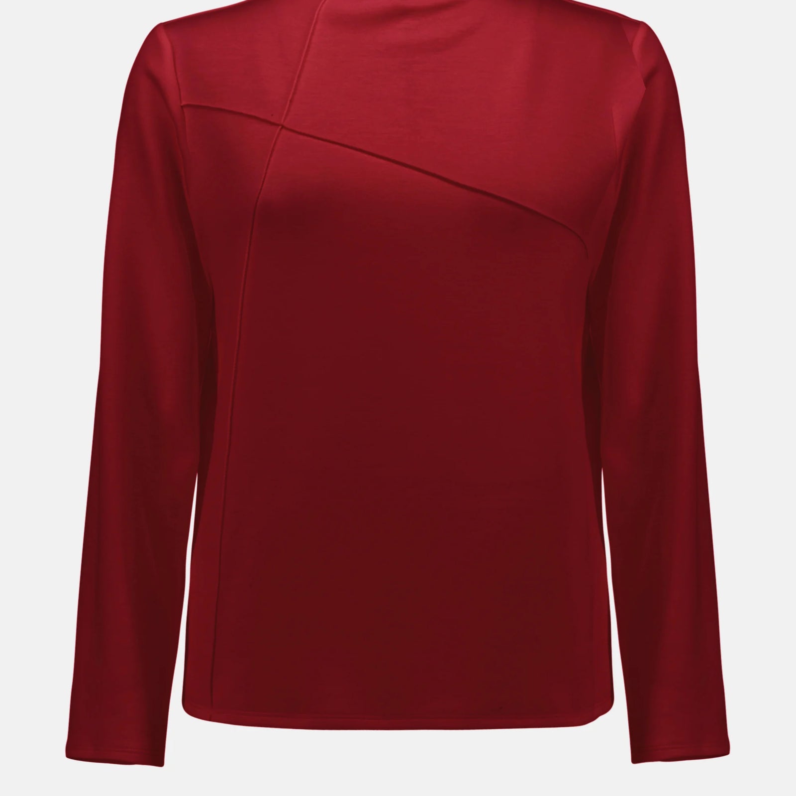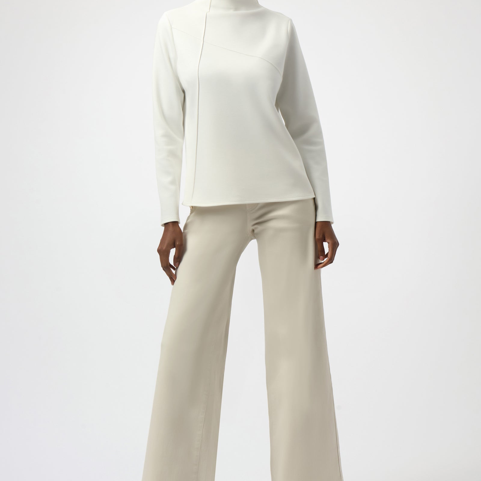 Designed in a light scuba jersey fabric, this top exudes casual elegance with its crisp straight silhouette and sleek mock neck. Pin-tuck detailing at the front of the garment adds flair and timeless appeal.