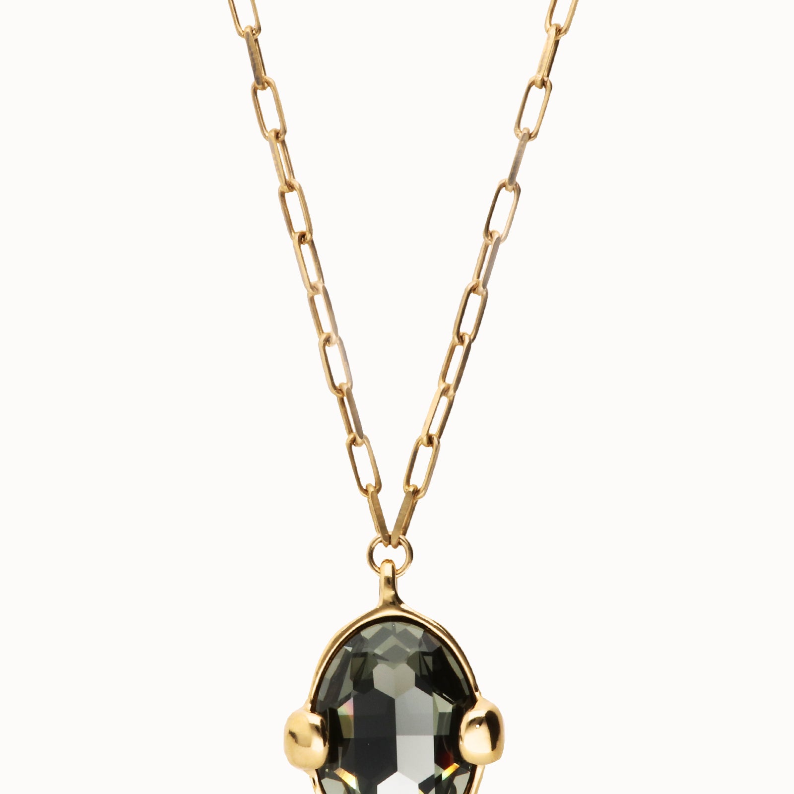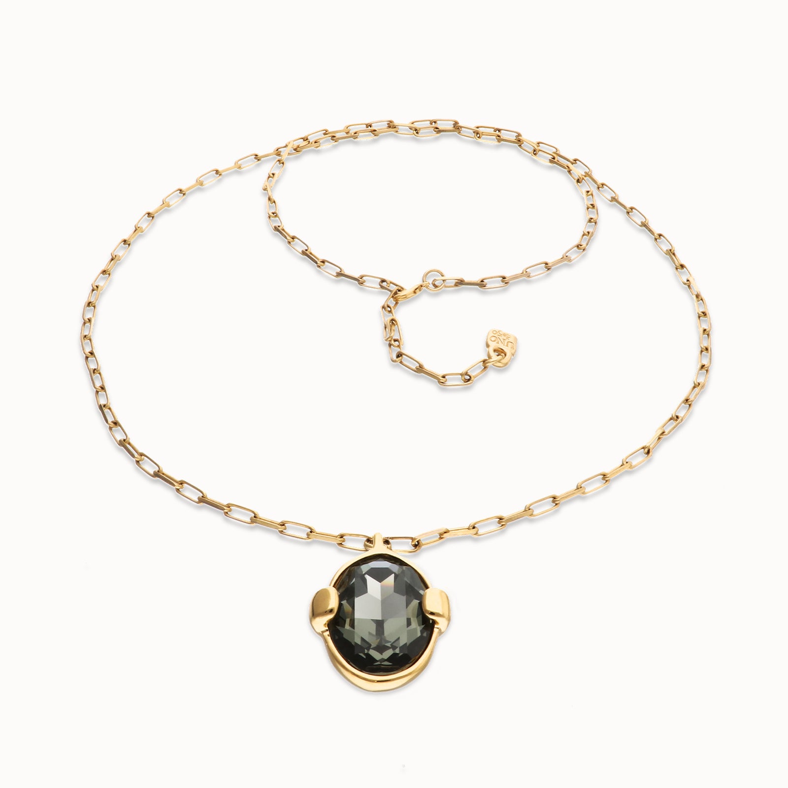 Uno de 50 Long necklace with gray oval faceted crystal Style # COL2032