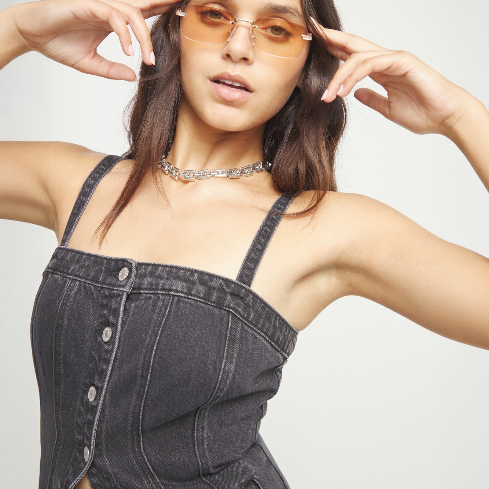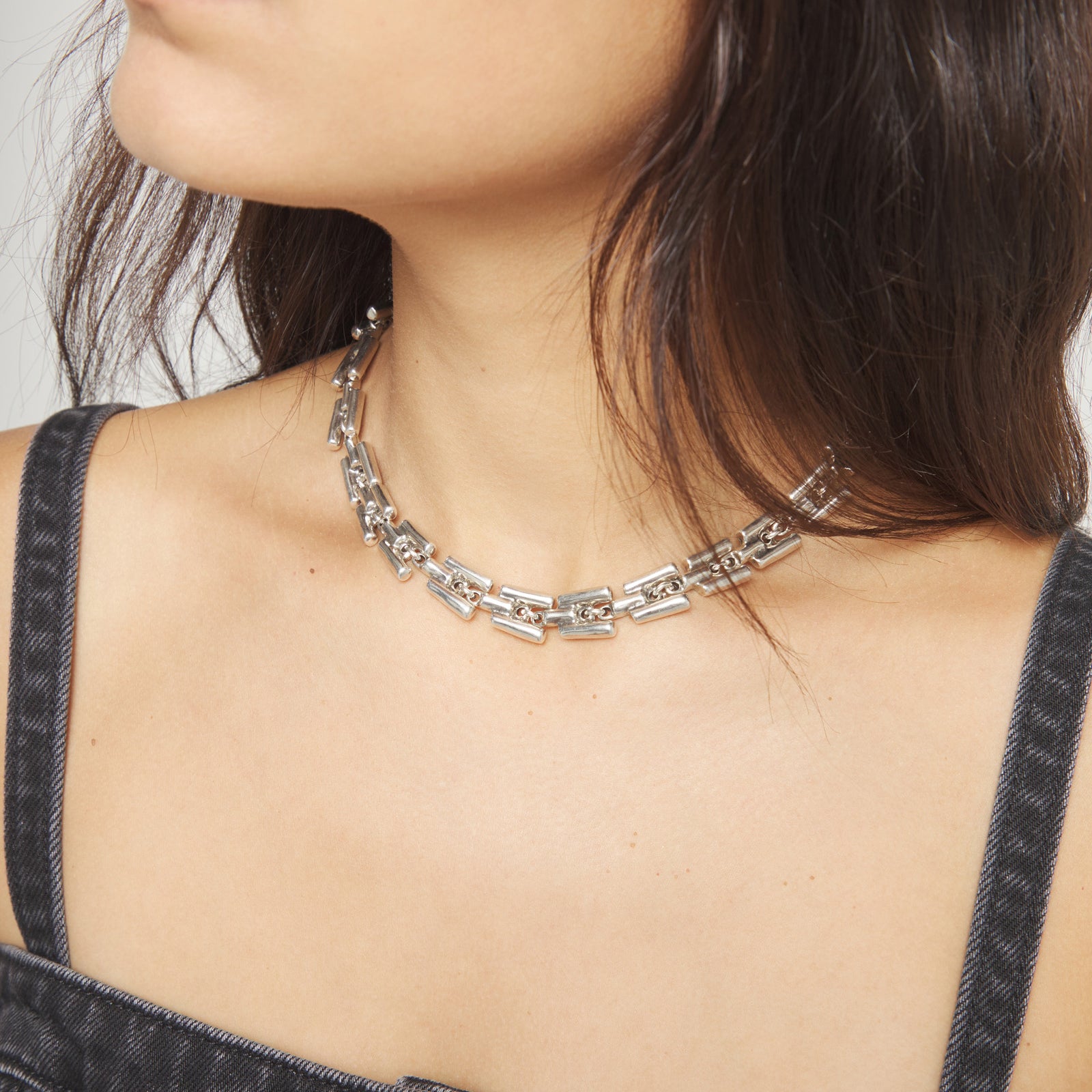 Uno De 50 Square links chain necklace Style # COL2065MTL0000U