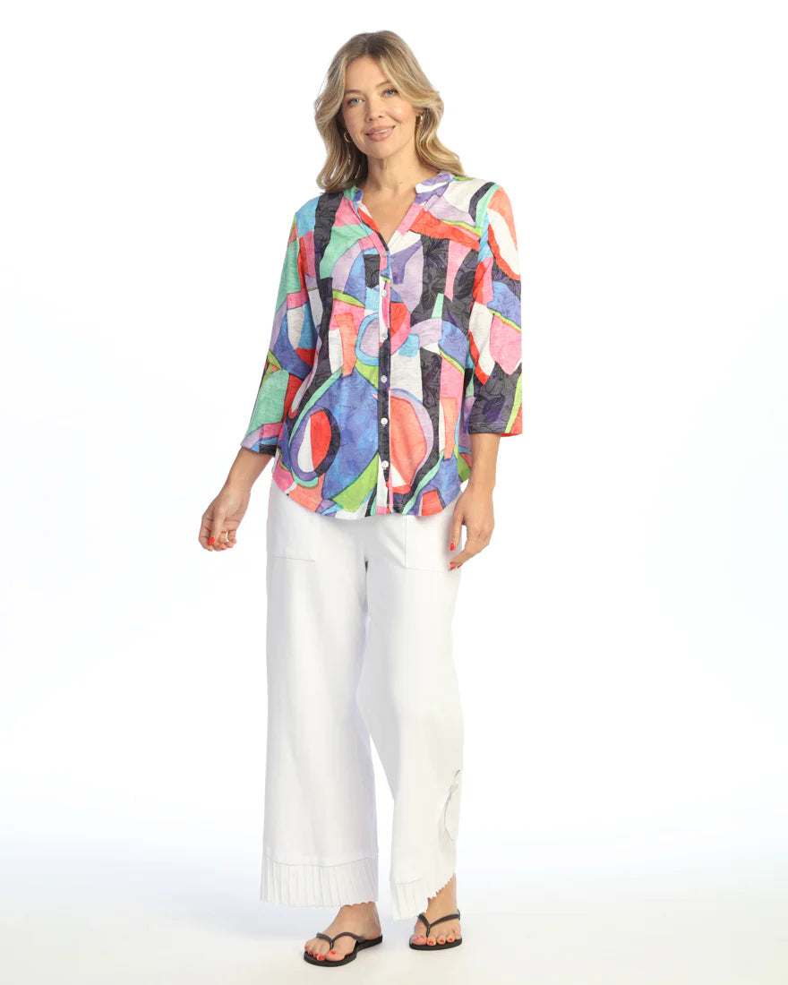 Jess & Jane MANDARIN COLLAR BUTTON-DOWN SHIRT Style # SG2-2064